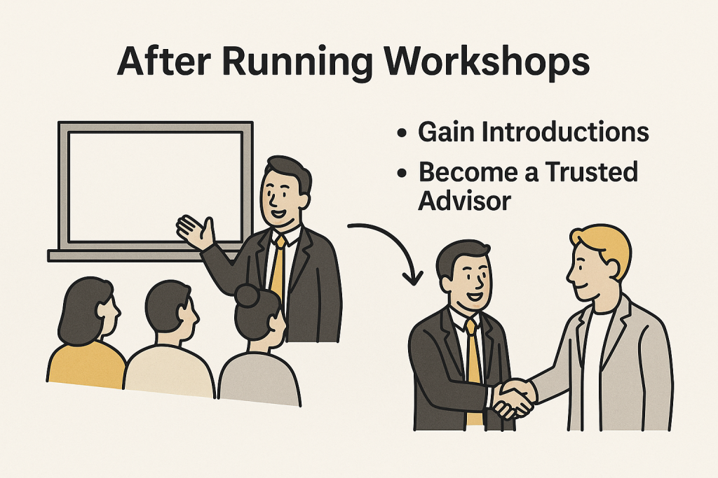 When you speak at or co-host an event, people experience your thinking firsthand. They feel your value. That turns what would’ve been a cold lead into a warm conversation — and often, into a high-quality intro or sale.